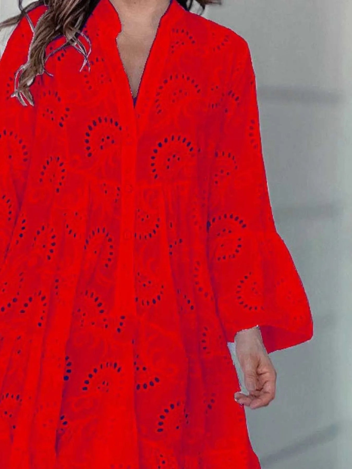 - Features:Buttoned,Tiered,Ruffled,Eyelet