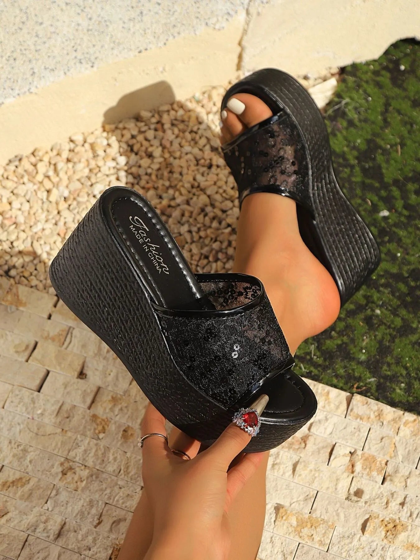 Lace Platform Wedge Sandals